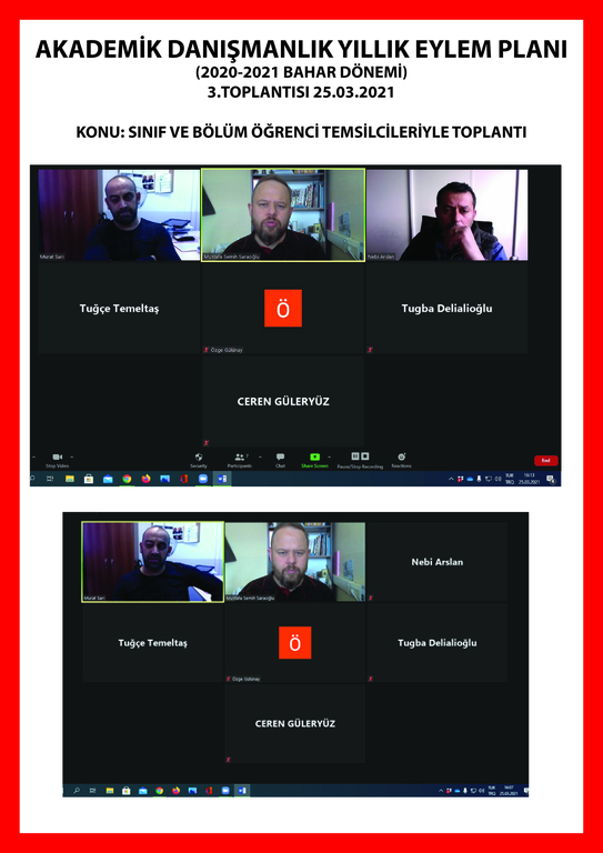 2020-2021 Akademik Yılı Bahar Dönemi 3. Akademik Danışmanlık Toplantısı Yapıldı.