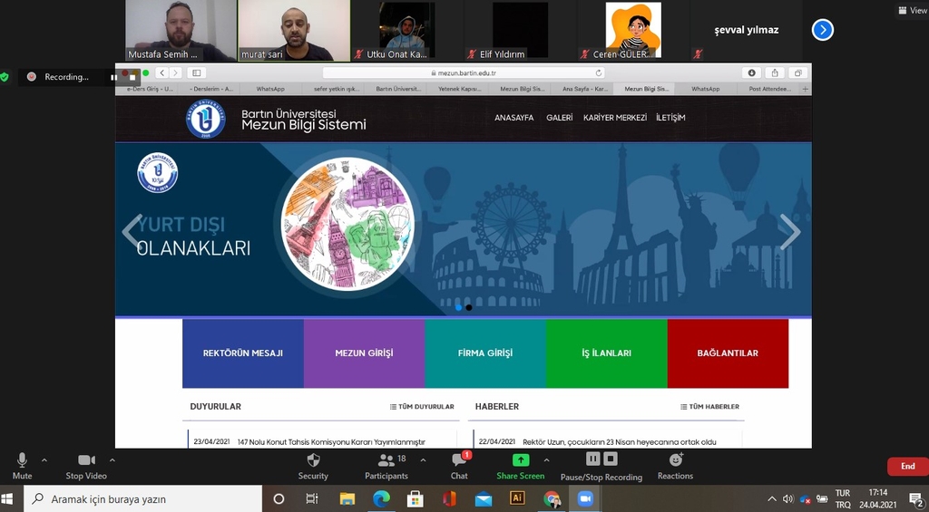 - Kariyer planlama, uygulama ve araştırma merkezine erişim, mezun bilgi sistemi,
